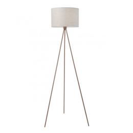 Pie de salón de la Colección TIVOLI, fabricado en metal con acabado en Nicquel satinado y pantalla de tela de lino.Espacio entre barras: 35 cm.Cable PVC negro con interruptor de pie, cae desde el portalámparas.