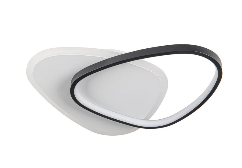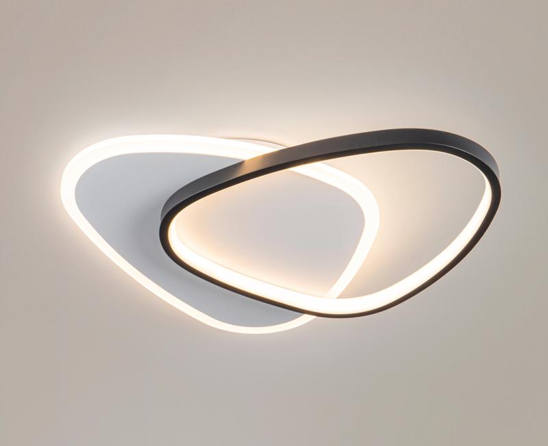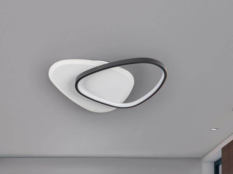 Plafón de techo o aplique de pared, realizado en metal acabado en blanco y negro mate. Difusor de acrílico opal. 28W, 3024lm, 3.000K