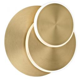Aplique de pared de la Colección BOSSA, fabricado en metal y metacrilato en acabado Negro/madera. Un diseño singular a la par que sencillo, en el que dos circunferencias orbitan sobre su eje dejando a nuestro antojo su colocación. LED integr