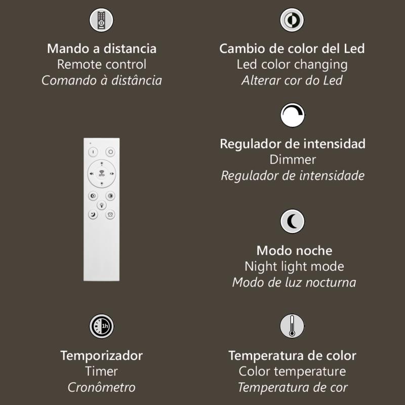 Plafón Led de la Colección NIRO (62W). Fabricado en metal en acabado negro con difusor en metacrilato. Led integrado CON regulador de intensidad, cambio de temperatura de color, temporizador y modo noche. Incluye mando a distancia. LED 62W 2524LM 300