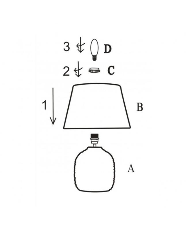 Sobremesa de la Colección LAZIO en acabado ceramica Arena, con pantalla de tela cónica de Ø28 cm.1 x E-27 / 60W (no incluida), compatible con bombillas LED.Cable PVC con interruptor ON/OFF.