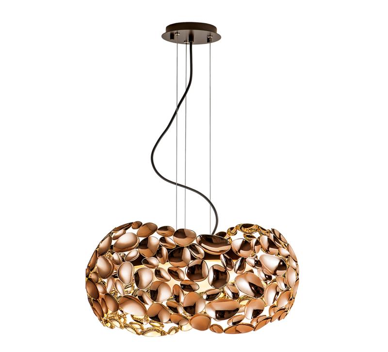 LAMPARA 5L NARISA Ø47 ORO ROSA - SCHULLERLámpara de 5 Luces realizada en metal con baño de oro rosa y pintura marrón oscuro. Difusor acrílico interior. Regulable en altura. Material/Tonalidad - Materiales: Metal, acrilico/Metal, acrylic - Acabado: Baño oro rosa, marrón, opal/Ro - Tonalidad de Cable: Negro Iluminación - Número de Bombillas: 5 - Tipo de Bombillas: G9 - Bombillas incluidas: Sí - Potencia por Bombilla: 6W - Voltaje de Bombilla/s incluidas: 220 V - Potencia Eléctrica: 5x10W - Lúmenes: 2750 - Lúmenes por Bombilla: 550.0 - Tensión: 220/240 V - Frecuencia: 50 Hz - Frecuencia de Bombilla: 50 Hz Medidas - Articulo: Diámetro 47 cms / Alto 26 cms - Lámpara instalada: Altura Mínima 45 cms / Altura Máxima 135 cms - Peso: 3,94 Kg - Pantalla/Tulipa: Diámetro 47 cms / Alto 25 cms - Florón de techo: Diámetro 12 cms / Alto 2 cms Otros Datos de Interés - IP: IP 20 - Código EAN: 8435435322083.0 - Colección: Narisa