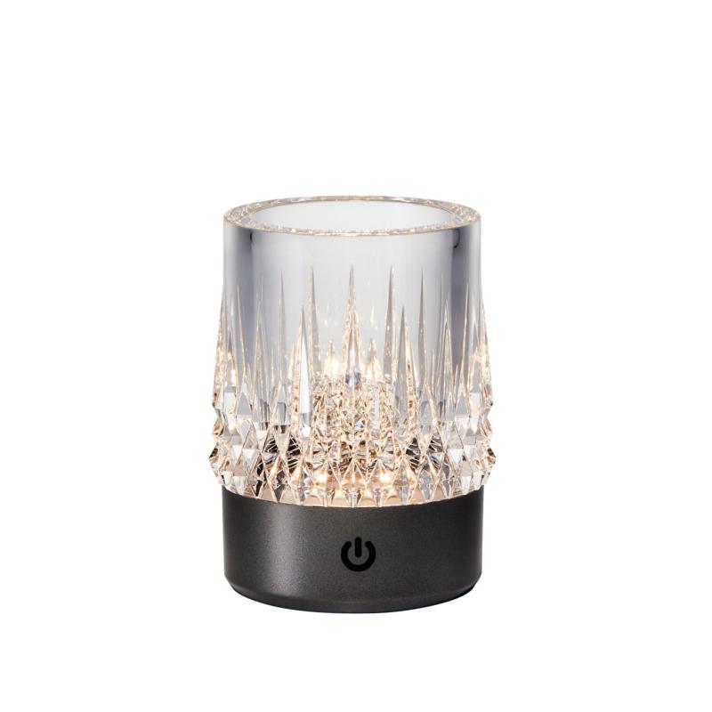 El sobremesa LAX combina la elegancia del cristal tallado con la modernidad de una base negra mate de líneas limpias. Su diseño sofisticado y compacto lo convierte en una pieza decorativa ideal. Gracias a su alimentación recargable y diseño portátil, el sobremesa LAX puede utilizarse tanto en interiores como en exteriores, siendo perfecto para cenas al aire libre o espacios donde se busque una iluminación ambiental elegante y versátil.