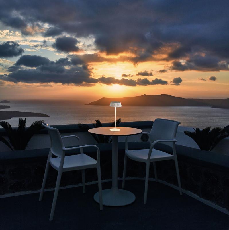 La Relax de Mantra es una lámpara portátil de sobremesa con batería recargable, diseñada para ofrecer una iluminación ambiental elegante tanto en interior como en exteriores.