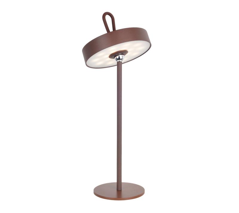 GONG- SOBREMESA LED CORTEN - SCHULLERSobremesa LED para interior y exterior, pantalla portátil con asa de silicona y soporte magnético. Realizado en metal acabado corten y difusor acrílico opal. 2,5W LED, 140lm, 3000K. DIMABLE. IP54. Material/Tonalidad - Materiales: Metal, ABS/Metal, ABS - Acabado: Corten, Opal./Corten, Opal. Iluminación - Potencia Eléctrica: 2.5W - Lúmenes: 140 - Tonalidad de la luz: 3000 K - Tensión: 5 V - Frecuencia: 50/60 Hz - Vida Media: 50000 Horas - CRI: 80 Medidas - Articulo: Diámetro 13 cms / Alto 35 cms - Peso: 0,67 Kg Otros Datos de Interés - IP: IP 54 - Código EAN: 8435435339166.0 - Colección: Gong