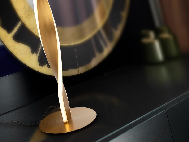 Lámpara de sobremesa realizada en metal acabado oro cepillado. Difusor de silicona opal. 12W, 850 lm, 3000k