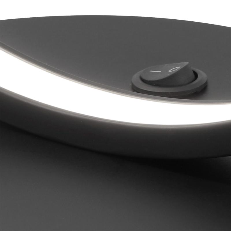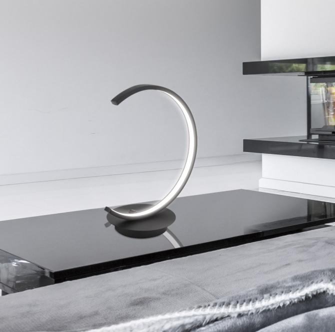 Sobremesa LED de la Colección UBER, fabricada en metal con acabado Negro. Diseño funcional con interruptor de encendido y apagado en la base.LED integrado 5W, 4000K.Cable de color negro.Ideal como iluminación indirecta en dormitorios, salones o