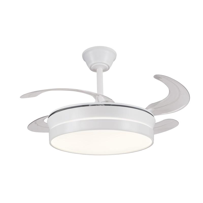 Ventilador Retractil FIONA-S Blanco P&B - Motor DC. luz LED. 40-92cmØ.