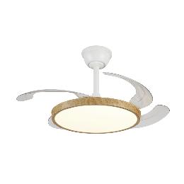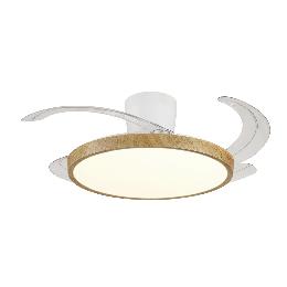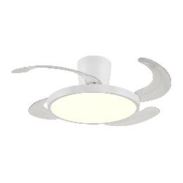 Ventilador de techo Melody, es ideal para estancias de tamaño medio. Su motor DC de 30w de ultima tecnología, super silencioso y de bajísimo consumo. Sus 4 aspas acrílicas de formato retorcido, quedan ocultas con el ventilador apagado, dejando solo ver una lámpara de techo.