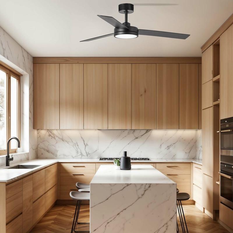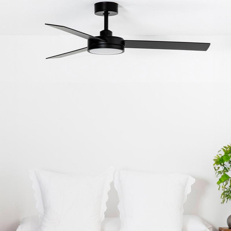 Materiales | - Base Motor: Acero - Aspas: Plywood - Difusor inferior: Policarbonato | | Tonalidad de Metal | Negro Mate | Accionado mediante | Mando a distancia. | Programador de apagado | Si | Numero de Aspas | 3 | Tonalidad de Aspas | Negro | Motor Tipo | DC - Bajo Consumo | Velocidades | 5 | Velocidades / Consumo | - 1ª velocidad 94 rpm - 4w - 2ª velocidad: 125 rpm - 6w - 3ª velocidad: 147 rpm - 8w - 4ª velocidad: 180 rpm - 13w - 5ª velocidad: 208 rpm - 20w - 6ª velocidad: 236 rpm - 30w | | Flujo de Aire | 194 m3/Minuto | Función Invierno | Si. | Luz | Si - Luz LED de 24w. | | Lumenes | 1300 lumenes | | Tonalidad de la luz | Seleccionable (2700-4000-6000k) | Posible montaje sin Barra | No | Posible montaje en techo inclinado | Si | Grafico de medidas Ventilador Barth Faro |