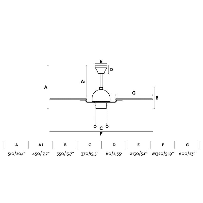 | Ventilador de Techo Cuba Faro | | Ventilador de techo ideal para habitaciones a partir de 17,6m2. Motor fabricado en acero y palas de ABS. El acabado del motor es oro envejecido y el de las palas marrón y son no reversibles. Accionado por cadena. Dispone de 3 velocidades regulables con un consumo de 20-34-65W y 73-99-145 revoluciones por minuto según velocidad. Este ventilador dispone de función inversa. Caudal de aire: 127,45 m3 min / 4501 CFM. Este ventilador es apto para techo inclinado y para instalar directo a techo. | Caracteristicas Ventilador Cuba Faro | Materiales | - Base Motor: Acero - Aspas: ABS | | Tonalidad de Metal | Oro viejo | Accionado mediante | Cadenas | Programador de apagado | No. | Numero de Aspas | 4 | Tonalidad de Aspas | Roble | Motor Tipo | AC- Corriente Alterna | Velocidades | 3 | Velocidades / Consumo | 1ª velocidad: 73 rpm / 20w. 2ª velocidad: 99 rpm / 34w. 3ª velocidad: 145 rpm / 65w. | | Flujo de Aire | 127.45 m3 por minuto | Función Invierno | Si. | Luz | No | Posible montaje sin Barra | No | Posible montaje en techo inclinado | Sí | Grafico de medidas Ventilador Cuba Faro |