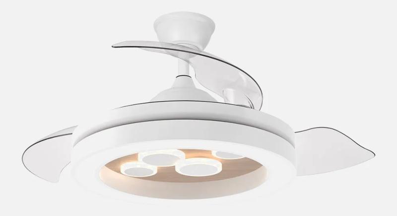 | Ventilador DC de la serie CUPIDO realizado en metal, policarbonato y ABS, en color BLANCO/HAYA con tres aspas DESPLEGABLES de ABS transparente muy resistentes. Diseño muy moderno y original, con bonito juego de luces. Tiene seis velocidades ajustables. Tecnología LED integrada con una potencia de 55W, con 3 TEMPERATURAS SELECCIONABLES DE LUZ (3000-4500-6500K) y 4960 lúmenes. Control de aire verano o invierno. Su medida es de 34,5/42X50 centímetros con las aspas plegadas y de 34,5/42X107 centímetros con las aspas desplegadas. Incluye dos tijas de 12,5 y 20 centímetros, para colocar a distintas alturas. Mando a distancia INCLUIDO, REGULABLE EN INTENSIDAD, con MEMORIA DE COLOR incorporada y TEMPORIZADOR 2/4 H. Puede utilizar el control VIA APP : FAN LAMP PRO, desde el que podrá manejar también su ventilador de manera fácil e intuitiva desde su móvil. Modelo disponible en color blanco/haya y negro/madera. |