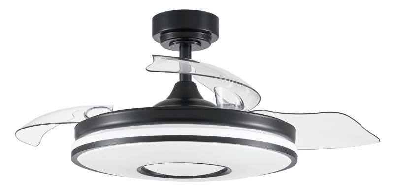 | Ventilador de Techo Dani Fabrilamp | Ventilador DC serie DANI realizado en metal, policarbonato, en color NEGRO con tres aspas DESPLEGABLES de ABS transparente muy resistentes. Tiene seis velocidades ajustables. Motor DC. Tecnología LED integrada con una potencia de 72W, con 3 TEMPERATURAS SELECCIONABLES DE LUZ (3000-4000-6000K) luz cálida, natural y blanco frío, y 7200 lúmenes. Control de aire verano o invierno. Su medida es de 32/44,5X48 centímetros con las aspas plegadas y de 32/44,5X108 centímetros con las aspas desplegadas. Incluye dos tijas de 12,5 y 25 centímetros, para instalar a distintas alturas. Mando a distancia INCLUIDO con MEMORIA DE COLOR incorporada y TEMPORIZADOR 1/2/4 H. Modelo disponible en color cuero, blanco, negro y níquel, además de en dos tamaños diferentes. | Caracteristicas Ventilador Dani Fabrilamp | Materiales | - Base Motor: Metal - Aspas: Acrílicas - Difusor inferior: Policarbonato y metal | | Tonalidad de Metal | Negro | Accionado mediante | Mando a distancia. | Programador de apagado | Sí. 1, 2, y 4 horas. | Numero de Aspas | 3 | Tonalidad de Aspas | Transparentes | Motor Tipo | DC - Bajo Consumo | Velocidades | 6 | Consumo / Flujo aire Revoluciones / Sonoridad | - 1ª velocidad: 8.1w - 6840m3/hora - 172 rpm - 24 dB - 2ª velocidad: 10.2w - 7200m3/hora - 190 rpm - 28 dB - 3ª velocidad: 13.4w - 7300m3/hora - 202 rpm - 30 dB - 4ª velocidad: 17.6w - 7880m3/hora - 211 rpm - 32 dB - 5ª velocidad: 21.8w - 8640m3/hora - 220 rpm - 34 dB - 6ª velocidad: 28.3w - 9680m3/hora - 226 rpm - 36 dB | Función Invierno | Sí | Luz | Si - Luz LED de 72w. | Datos de Luz | 7200 lúmenes | | Tonalidad de la Luz | Seleccionable (3000-4000-6000k) Con Memoria | Posible montaje sin Barra | No | Posible montaje en techo inclinado | Sí* | Grafico de medidas Ventilador Dani Fabrilamp |