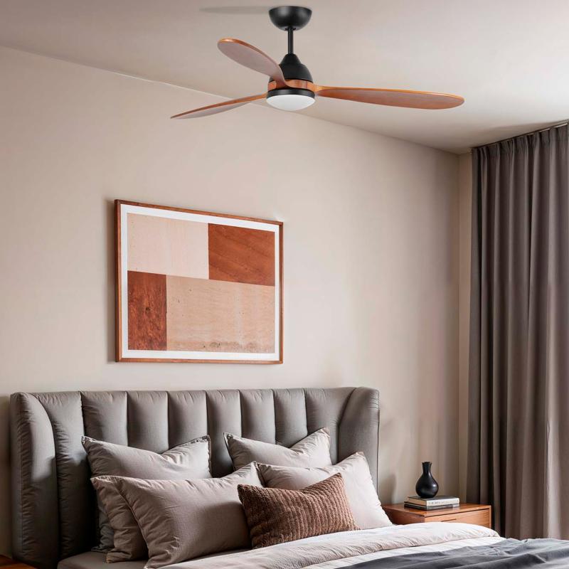 | | Ventilador Poros L Faro POROS es un ventilador de techo con luz y acabado en negro y nogal de porte elegante. Sus palas redondeadas aportan una sensación de ligereza al diseño, aportando un toque especial a cualquier estancia. | Características Ventilador Poros L Faro | Materiales | - Base Motor: Acero - Aspas: Madera natural - Difusor: Cristal | | Tonalidad de Metal | Negro mate | Accionado mediante | Mando a distancia. | Programador de apagado | Sí | Numero de Aspas | 3 | Tonalidad de Aspas | Nogal | Motor Tipo | DC - Corriente Continua | Velocidades | 6 | Velocidades / Consumo | - 1ª velocidad: 120 rpm - 7w - 2ª velocidad: 132 rpm - 9w - 3ª velocidad: 145 rpm - 12w - 4ª velocidad: 160 rpm - 15w - 5ª velocidad: 174 rpm - 20w - 6ª velocidad: 185 rpm - 26w | | Flujo de Aire | 240 m3 | Función Invierno | Si. | Luz | Sí. Led SMD - Regulable en intensidad | | Datos de luz | 2700k - 900 lúmenes | Luminaria incluida | Sí | Posible montaje sin Barra | No | Posible montaje en techo inclinado | Si* | Grafico de medidas Ventilador Poros L Faro | Guardar
