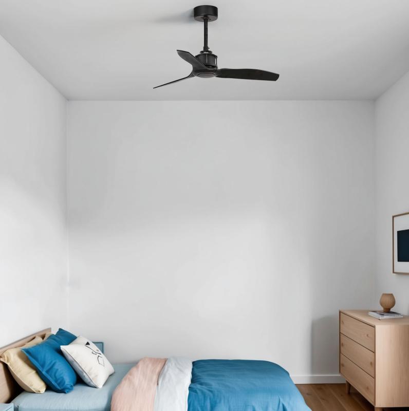 | | Ventilador de Techo Just Fan | JUST FAN es la esencia de un ventilador de estilo industrial y muy actual. Un esqueleto de metal estilizado que presenta un diseño rompedor e impactante. Accionado por mando a distancia, incluido. Este ventilador de techo con motor DC de bajo consumo dispone de 6 velocidades regulables y función inversa. | Caracteristicas Ventilador Just Fan Faro | Materiales | - Base Motor: Metal - Aspas: Policarbonato | | Tonalidad de Metal | Negro | Accionado mediante | Mando a distancia. | Programador de apagado | No | Numero de Aspas | 3 | Tonalidad de Aspas | Negro | Motor Tipo | DC - Bajo Consumo | Velocidades | 6 | Velocidades / Consumo | - 1ª velocidad: 51 rpm - 2w - 2ª velocidad: 86 rpm - 3w - 3ª velocidad: 122 rpm - 4w - 4ª velocidad: 158 rpm - 5w - 5ª velocidad: 195 rpm - 6w - 6ª velocidad: 235 rpm - 9w | Función Invierno | Si. Activada en el mando. | Flujo de aire | 121 m3 | Luz | No | Posible montaje sin Barra | No | Posible montaje en techo inclinado | Si* | | Peso | 3.9 kg | Grafico de medidas Ventilador Just Fan Faro |