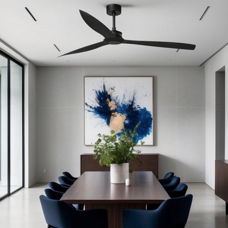 | | Ventilador de Techo Just FAN | JUST FAN XL es un ventilador de techo moderno es ideal para estancias de 28 a 39 m². Accionado por mando a distancia, incluido. Este ventilador de techo con motor DC de bajo consumo, dispone de 6 velocidades regulables. Este ventilador tiene función inversa verano-invierno, por lo que podrá utilizarlo también en invierno mejorando la eficiencia de su sistema de calefacción. Caudal de aire: 175,35 m3 min / 6190 CFM. Se sirve con 3 barras de diferente tamaño, para seleccionar la altura ideal. | Caracteristicas Ventilador Just Fan Faro | Materiales | - Base Motor: Metal - Aspas: ABS | | Tonalidad de Metal | Negro | Accionado mediante | Mando a distancia. | Programador de apagado | No | Numero de Aspas | 3 | Tonalidad de Aspas | Negro | Motor Tipo | DC - Bajo Consumo | Velocidades | 6 | Velocidades / Consumo | - 1ª velocidad: 48 rpm - 6w - 2ª velocidad: 64 rpm - 6w - 3ª velocidad: 82 rpm - 9w - 4ª velocidad: 98 rpm - 12w - 5ª velocidad: 114 rpm - 17w - 6ª velocidad: 145 rpm - 31w | Función Invierno | Si. Activada en el mando. | Flujo de aire | 175 m3 | Luz | No | Posible montaje sin Barra | No | Posible montaje en techo inclinado | Si* | | Peso | 7.3 kg | Grafico de medidas Ventilador Just Fan Faro |