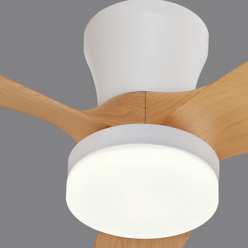 Ventilador Emily S Blanco madera especial techos bajos - Motor DC. Luz LED. 80cmØ.