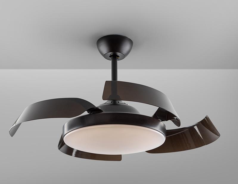 Materiales | - Base Motor: Metal - Aspas: Acrílica - Difusor inferior: Acrílico opal | | Tonalidad de Metal | Negro | Accionado mediante | Mando a distancia | Programador de apagado | Si. 1, 2, y 4 horas | Numero de Aspas | 4 | Tonalidad de Aspas | Negro Brillo Semiopacas | Motor Tipo | DC - Corriente Continua | Velocidades | 6 | Velocidades / Revoluciones Consumo / Decibelios | - 1ª Velocidad / 114 rpm / - / 39 dB - 2ª Velocidad / 122 rpm / - / - - 3ª Velocidad / 133 rpm / - / - - 4ª Velocidad / 143 rpm / - / - - 5ª Velocidad / 152 rpm / - / - - 6ª Velocidad / 165 rpm / 35w / 44 dB | Función Invierno | Sí | Luz | Si | Fuente de Luz | Luz LED de 36w | | Lumenes | 2880 Lúmenes | | Tonalidad de luz | Seleccionable 3000 - 6000k. Regulable en intensidad | Posible montaje en techo inclinado | Si | Peso | 7.8 Kg | Grafico de medidas Ventilador Enzo Schuller |