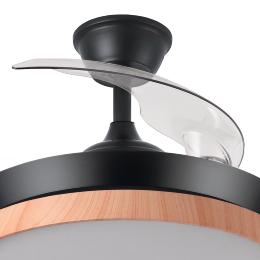 | | | Ventilador de Techo EVROS Fabrilamp | | Ventilador DC de la serie EVROS realizado en metal, policarbonato y ABS, en color NEGRO/HAYA con tres aspas DESPLEGABLES de ABS transparente muy resistentes. Tiene seis velocidades ajustables. Tecnología LED integrada con una potencia de 72W, con 3 TEMPERATURAS SELECCIONABLES DE LUZ (3000-4000-6000K) y 6120 lúmenes. Control de aire verano o invierno. Su medida es de 32/47X40 centímetros con las aspas plegadas y de 32/47X91 centímetros con las aspas desplegadas. Incluye dos tijas de 10 y 25 centímetros, para colocar a distintas alturas. Mando a distancia INCLUIDO con MEMORIA DE COLOR incorporada y TEMPORIZADOR 1/2/4 H. Disponibles en esta serie en blanco/haya y en negro/haya y en dos tamaños diferentes | Caracteristicas Ventilador Evros Fabrilamp | Materiales | - Base Motor: Metal - Aspas: ABS - Difusor inferior: Policarbonato | | Tonalidad de Metal | Negro | Accionado mediante | Mando a distancia. | Programador de apagado | Sí. 1, 2, y 4 horas. | Numero de Aspas | 3 | Tonalidad de Aspas | Transparentes | Motor Tipo | DC - Bajo Consumo | Velocidades | 6 | Consumo / Flujo aire Revoluciones / Sonoridad | - 1ª velocidad: 5.2w - 1200m3/hora - 170 rpm - 34.3 dB - 2ª velocidad: 6.5w - 1500m3/hora - 190 rpm - 35.1 dB - 3ª velocidad: 8.6w - 2100m3/hora - 210 rpm - 35.9 dB - 4ª velocidad: 11.2w - 2600m3/hora - 230 rpm - 37.2 dB - 5ª velocidad: 14.5w - 3100m3/hora - 250 rpm - 38.3 dB - 6ª velocidad: 17.7w - 4500m3/hora - 270 rpm - 40 dB | Función Invierno | Sí | Luz | Si - Luz LED de 72w. | Datos de Luz | 6120 lúmenes | | Tonalidad de la Luz | Seleccionable (3000-4000-6000k) Con Memoria | Posible montaje sin Barra | No | Posible montaje en techo inclinado | No | Grafico de medidas Ventilador Evros Fabrilamp |