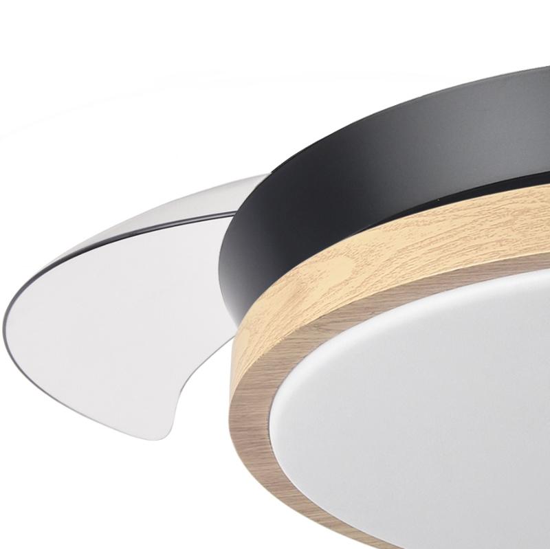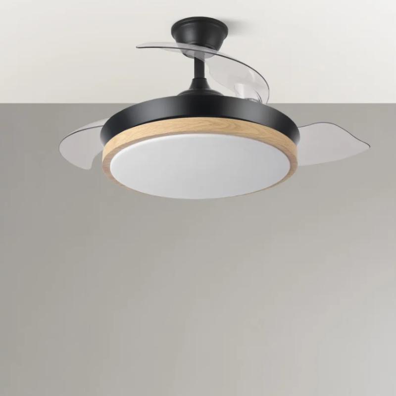| | | Ventilador de Techo EVROS Fabrilamp | | Ventilador DC de la serie EVROS realizado en metal, policarbonato y ABS, en color NEGRO/HAYA con tres aspas DESPLEGABLES de ABS transparente muy resistentes. Tiene seis velocidades ajustables. Tecnología LED integrada con una potencia de 59W, con 3 TEMPERATURAS SELECCIONABLES DE LUZ (3000-4000-6000K) y 6980 lúmenes. Control de aire verano o invierno. Su medida es de 32/47X40 centímetros con las aspas plegadas y de 32/47X91 centímetros con las aspas desplegadas. Incluye dos tijas de 10 y 25 centímetros, para colocar a distintas alturas. Mando a distancia INCLUIDO con MEMORIA DE COLOR incorporada y TEMPORIZADOR 1/2/4 H. Disponibles en esta serie en blanco/haya y en negro/haya y en dos tamaños diferentes | Caracteristicas Ventilador Evros Fabrilamp | Materiales | - Base Motor: Metal - Aspas: ABS - Difusor inferior: Policarbonato | | Tonalidad de Metal | Negro | Accionado mediante | Mando a distancia. | Programador de apagado | Sí. 1, 2, y 4 horas. | Numero de Aspas | 3 | Tonalidad de Aspas | Transparentes | Motor Tipo | DC - Bajo Consumo | Velocidades | 6 | Consumo / Flujo aire Revoluciones / Sonoridad | - 1ª velocidad: 7w - 2752m3/hora - 170 rpm - 34.3 dB - 2ª velocidad: 12w - 3508m3/hora - 190 rpm - 35.1 dB - 3ª velocidad: 17w - 4611m3/hora - 210 rpm - 35.9 dB - 4ª velocidad: 22w - 5568m3/hora - 230 rpm - 37.2 dB - 5ª velocidad: 27w - 6427m3/hora - 250 rpm - 38.3 dB - 6ª velocidad: 32w - 7216m3/hora - 270 rpm - 45 dB | Función Invierno | Sí | Luz | Si - Luz LED de 59w. | Datos de Luz | 6980 lúmenes | | Tonalidad de la Luz | Seleccionable (3000-4000-6000k) Con Memoria | Posible montaje sin Barra | No | Posible montaje en techo inclinado | No | Grafico de medidas Ventilador Evros Fabrilamp |