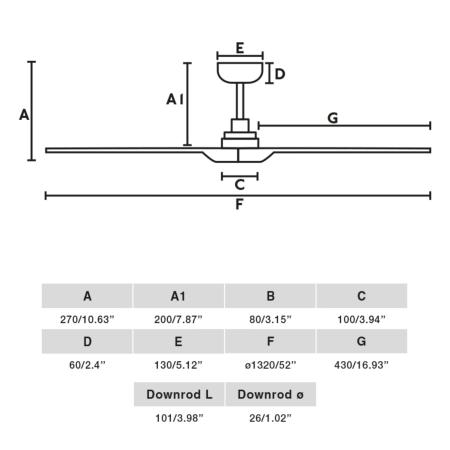 Materiales | - Base Motor: Acero - Aspas: Madera - Difusor: Cristal | | Tonalidad de Metal | Blanco | Accionado mediante | Mando a distancia. | Programador de apagado | Sí | Numero de Aspas | 3 | Tonalidad de Aspas | Madera Clara | Motor Tipo | DC - Bajo Consumo | Velocidades | 6 | Velocidades / Consumo | - 1ª velocidad: 58 rpm - 4.1w - 2ª velocidad: 75 rpm - 5.3w - 3ª velocidad: 94 rpm - 7.6w - 4ª velocidad: 124 rpm - 13w - 5ª velocidad: 152 rpm - 22.7w - 6ª velocidad: 173 rpm - 32.4w | | Flujo de Aire173 | 174.5 m3 | Función Invierno | Si. Activada en el mando. | Luz | Sí - 10w LED | | Lumenes | 800 Lumenes | | Tonalidad de la luz | Seleccionable: 3000k, 4200k, 6500k | | Luminaria Incluida | Sí | | Disponible versión sin luz | Sí. Haz click para ver | Posible montaje sin barra | No | Posible montaje en techo inclinado | Si* | Grafico de medidas Ventilador Heywood Faro |