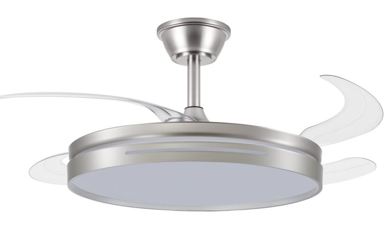 | | | Ventilador de Techo Micenas Fabrilamp | | Ventilador DC serie MICENAS realizado en metal, ABS y policarbonato, en color NÍQUEL con cuatro aspas DESPLEGABLES en ABS muy resistentes. Tiene seis velocidades ajustables. Tecnología LED integrada con una potencia de 59W, con 3 TEMPERATURAS DE LUZ (3000-4000-6000K) y 6980 lúmenes. Control de aire verano o invierno. Su medida es de 32/44,5X48 centímetros con las aspas plegadas y de 32/44,5X108 centímetros con las aspas desplegadas. Incluye dos tijas de 12,5 y 25 centímetros. Mando a distancia INCLUIDO con MEMORIA DE COLOR incorporada y TEMPORIZADOR 1/2/4 H. Modelo disponible en color blanco, níquel, negro y cuero, y también en dos tamaños. | Caracteristicas Ventilador Micenas Fabrilamp | Materiales | - Base Motor: Metal - Aspas: ABS - Difusor inferior: Policarbonato | | Tonalidad de Metal | Níquel satinado | Accionado mediante | Mando a distancia. | Programador de apagado | Sí. 1, 2, y 4 horas. | Numero de Aspas | 4 | Tonalidad de Aspas | Transparentes | Motor Tipo | DC - Bajo Consumo | Velocidades | 6 | Consumo / Flujo aire Revoluciones / Sonoridad | - 1ª velocidad: 5.6w - 4980m3 - 197 rpm - 36 dB - 2ª velocidad: 9.5w - 5592m3 - 214 rpm - 37 dB - 3ª velocidad: 14.4w - 5889m3 - 228 rpm - 38 dB - 4ª velocidad: 19.3w - 6960m3 - 240 rpm - 39 dB - 5ª velocidad: 25.2w - 7990m3 - 250 rpm - 40 dB - 6ª velocidad: 30w - 8960m3 - 260 rpm - 41 dB | Función Invierno | Sí | Luz | Si - Luz LED de 59w. | Datos de Luz | 6980 lúmenes | | Tonalidad de la Luz | Seleccionable (3000-4000-6000k) Con Memoria | Posible montaje sin Barra | No | Posible montaje en techo inclinado | Sí* | Grafico de medidas Ventilador Micenas Fabrilamp |