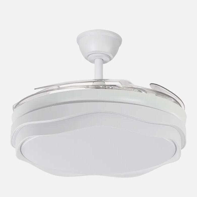 | Ventilador de la serie NASIM realizado en metal y policarbonato, en color BLANCO con cuatro aspas DESPLEGABLES de ABS transparente muy resistentes. Motor DC. Tiene seis velocidades ajustables. Tecnología LED integrada con una potencia de 59W, con 3 TEMPERATURAS DE LUZ (3000-4000-6000K) y 6980 lúmenes. Control de aire verano o invierno. Su medida es de 34,5/42X50X50 centímetros con las aspas plegadas y de 34,5/42X107X107 centímetros con las aspas desplegadas, con dos medidas de tija para instalarlo a diferentes alturas. Mando a distancia INCLUIDO, REGULABLE EN INTENSIDAD, con MEMORIA DE COLOR incorporada y TEMPORIZADOR 2/4 H. |