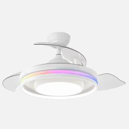 | Ventilador DC de la serie PITUFO realizado en metal, policarbonato y ABS, en color NEGRO con tres aspas DESPLEGABLES de ABS transparente muy resistentes. Diseño muy moderno y original, con bonito juego de luces, posee un aro en su estructura con luces de colores (RGB). Tiene seis velocidades ajustables. Tecnología LED integrada con una potencia de 57W, con 3 TEMPERATURAS SELECCIONABLES DE LUZ + RGB (3000-4500-6500K) y 3990 lúmenes. Control de aire verano o invierno. Su medida es de 32/47X50 centímetros con las aspas plegadas y de 32/47X107 centímetros con las aspas desplegadas. Incluye dos tijas de 10 y 25 centímetros, para colocar a distintas alturas. Mando a distancia INCLUIDO, REGULABLE EN INTENSIDAD, con MEMORIA DE COLOR incorporada y TEMPORIZADOR 2 H. Puede utilizar el control VIA APP : FAN LAMP PRO, desde el que podrá manejar también su ventilador de manera fácil e intuitiva desde su móvil y elegir los colores de su aro exterior entre una amplia gama de tonalidades. Modelo disponible en color blanco y negro. |