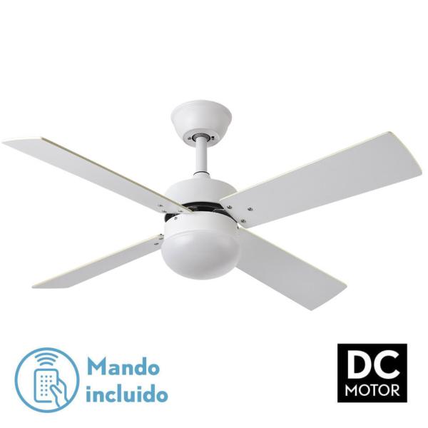 | | Ventilador de Techo Sofia Fabrilamp | Ventilador DC serie SOFIA realizado en metal y policarbonato con las aspas en MDF. De color BLANCO con cuatro aspas REVERSIBLES de color BLANCO/HAYA y seis velocidades. Tiene una medida de 40x107x107 centímetros. Viene con dos portalámpara E27. Bombillas NO incluidas. Control de aire para verano o invierno. Mando a distancia INCLUIDO con temporizador de 1 hasta 4 horas. Modelo también disponible en color Níquel-Plata/Haya y en Cuero-Cerezo/Nogal. | Caracteristicas Ventilador Sofia Fabrilamp | Materiales | - Base Motor: Metal - Aspas: Madera MDF - Difusor inferior: Policarbonato | | Tonalidad de Metal | Blanco. | Accionado mediante | Mando a distancia. | Programador de apagado | Sí | Numero de Aspas | 4 | Tonalidad de Aspas | Reversibles: Blanco/Haya | Motor Tipo | DC -Bajo consumo | Velocidades | 6 | Velocidades / Consumo | - 1ª velocidad: 130 rpm / 9w / 2670m3 - 2ª velocidad: 146 rpm / 12w / 3410m3 - 3ª velocidad: 162 rpm / 16w / 4210m3 - 4ª velocidad: 181 rpm / 21w / 5010m3 - 5ª velocidad: 198 rpm / 27w / 5820m3 - 6ª velocidad: 206 rpm / 32w / 6620m3 | Función Invierno | Si | Luz | Si | Fuente de Luz | 2 Bombillas E-27 | Bombillas incluidas | No | Posible montaje sin Barra | No | Posible montaje en techo inclinado | Si* | Grafico de medidas Ventilador Sofia Fabrilamp |